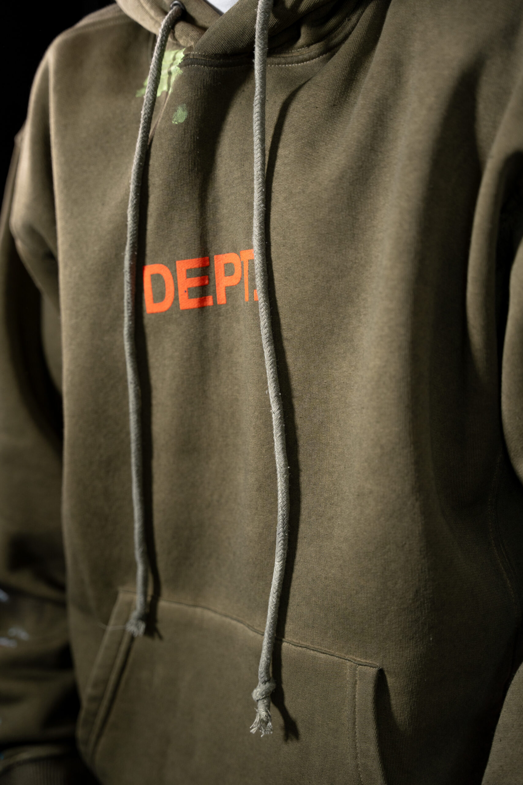 The Gallery Dept Olive Green Hoodie is a premium streetwear staple crafted with meticulous attention to detail. This hoodie boasts a timeless olive green hue, effortlessly complementing a variety of casual looks. Its classic silhouette features a comfortable kangaroo pocket and a relaxed fit, ensuring both style and practicality. The signature Gallery Dept branding adds a touch of understated luxury, elevating this piece from ordinary to extraordinary.