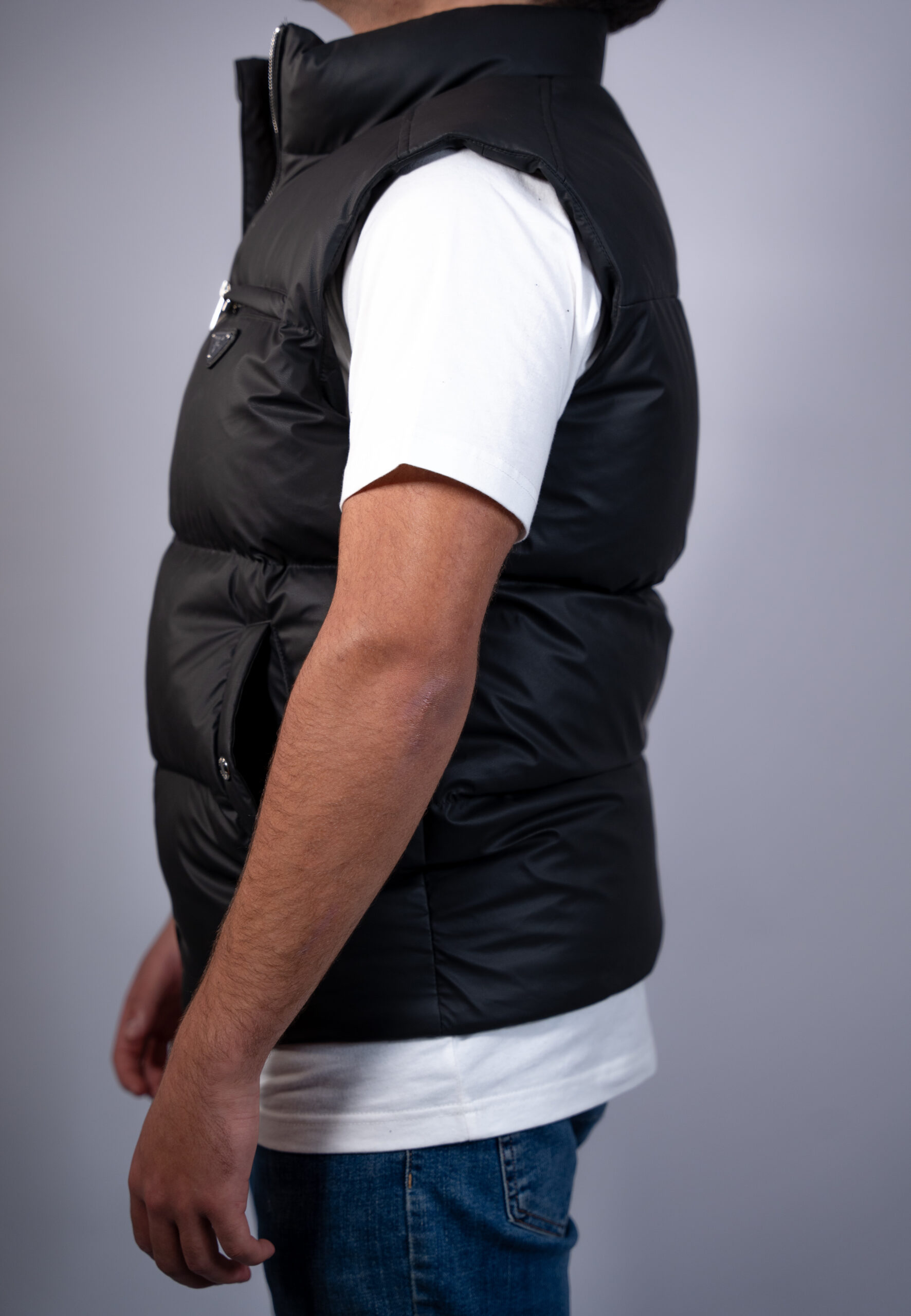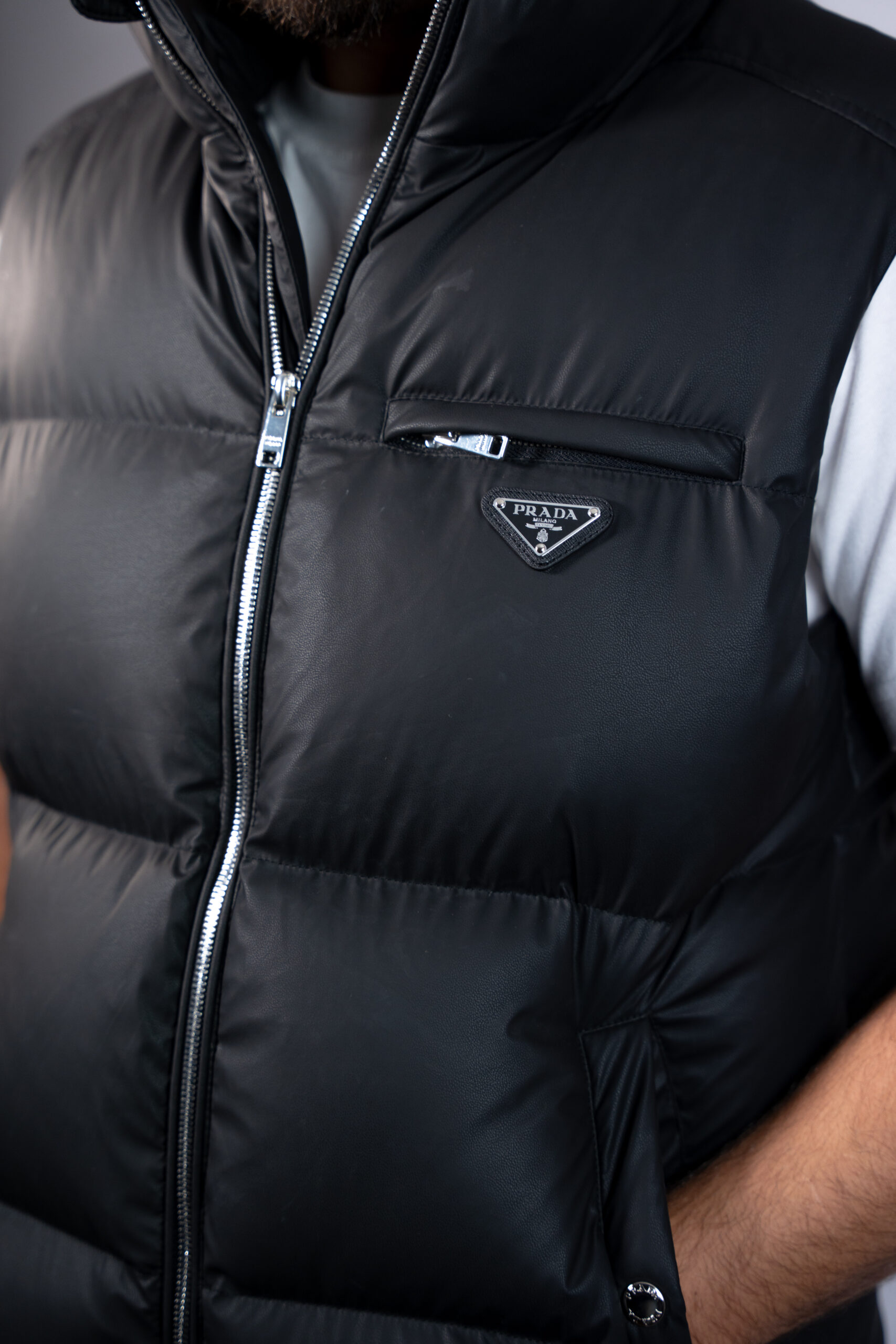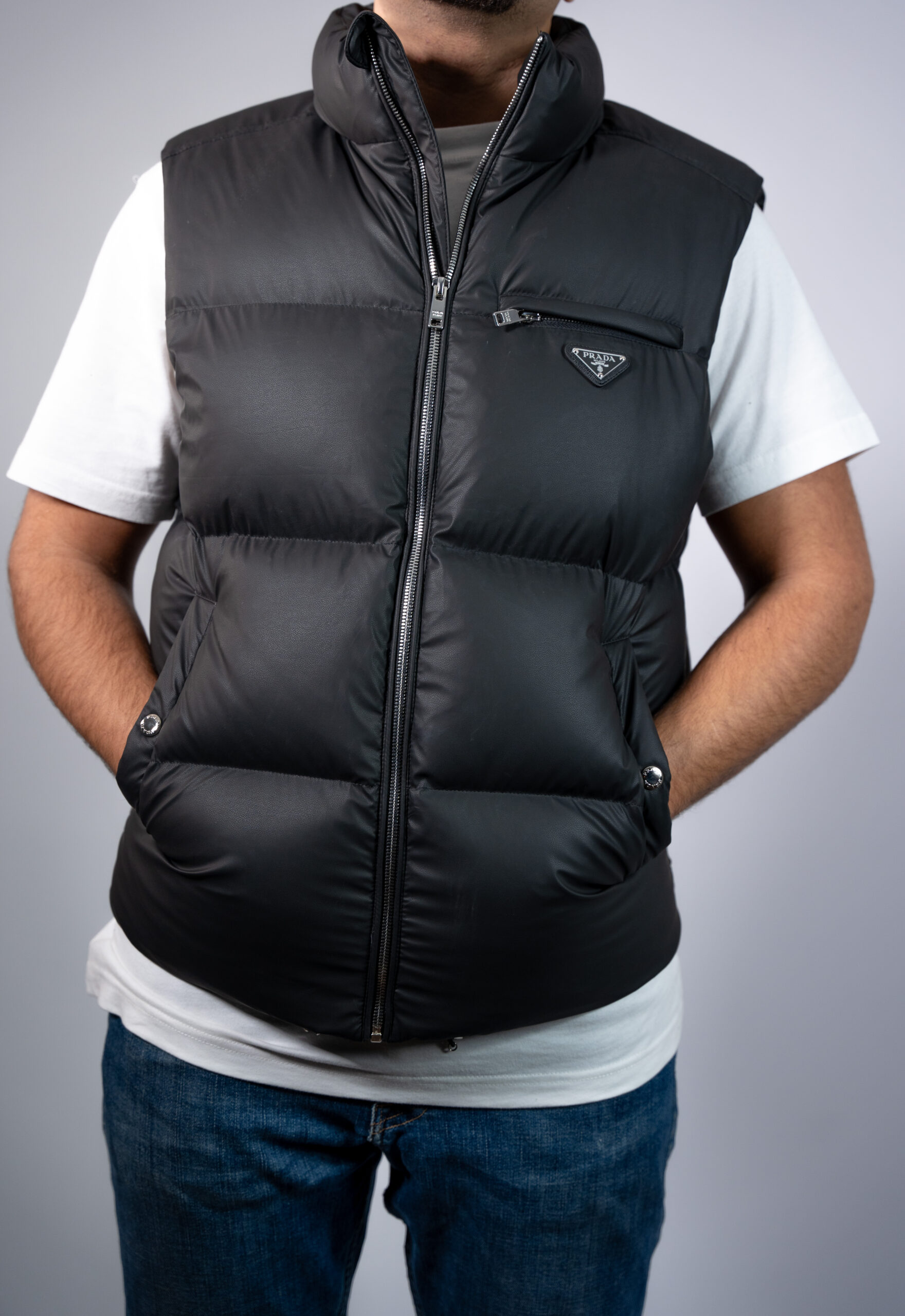 Elevate your wardrobe with the Prada Re-Nylon Down Vest, a statement piece that embodies both style and sustainability.